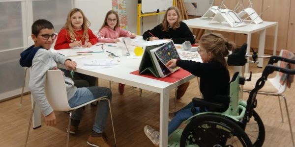 Ambre, jeune fille en situation de handicap, est venue rencontrer la section Atelier Cré'art, qu'elle intégrera 1 fois par mois, le mardi 25 novembre.
